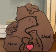 Personaliseer je gezin in deze beren familie. Een familie van 3,4,5 en 6 is mogelijk. Vergeet bij de namen ook de leeftijden van de kinderen niet te vermelden, zo kunnen we voor de jongste ook de kleinste beer gebruiken.