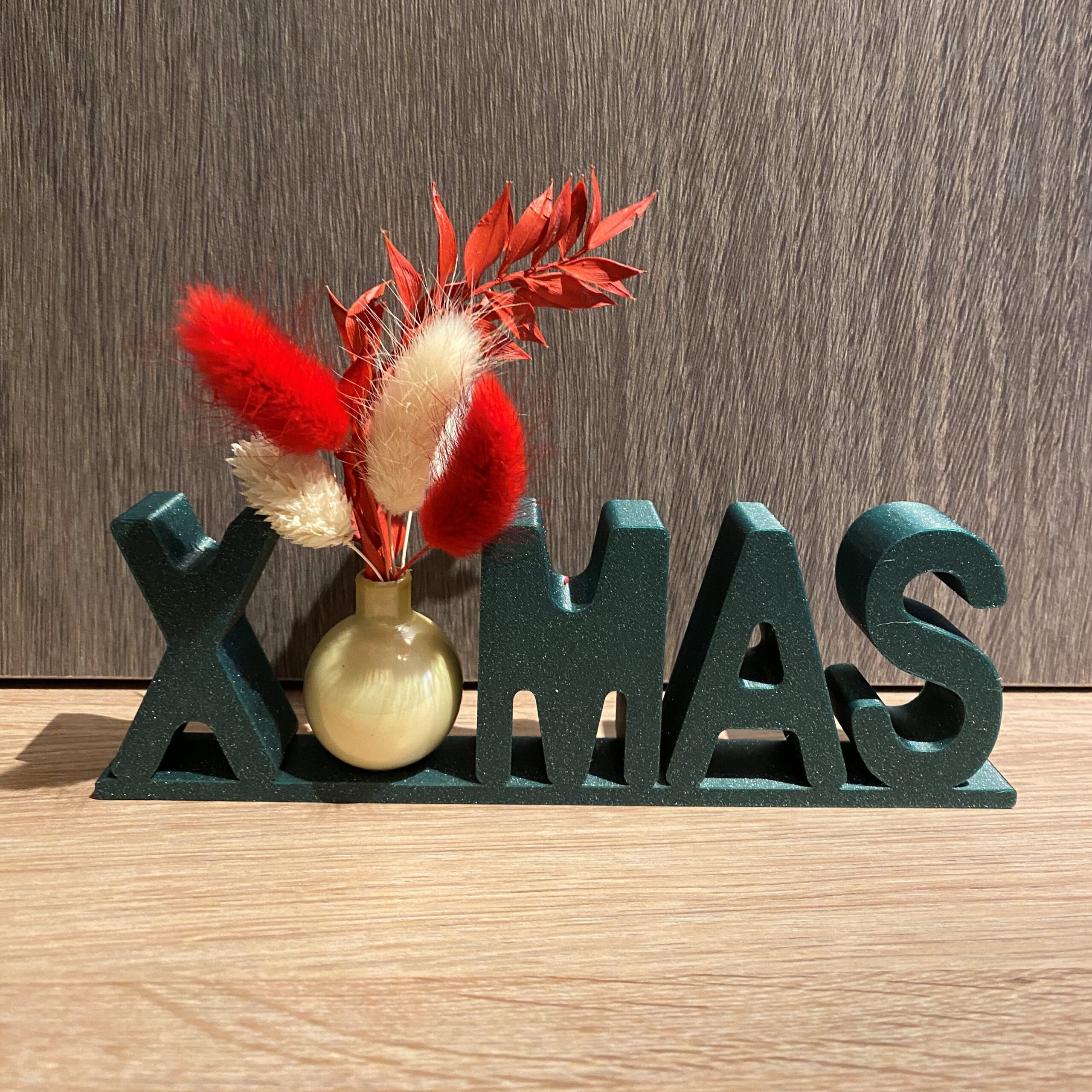 Prachtig kerstdecoratie ‘X-MAS’ aangevuld met een kerstballetje met droogbloemen. Ook een perfect geschenk!